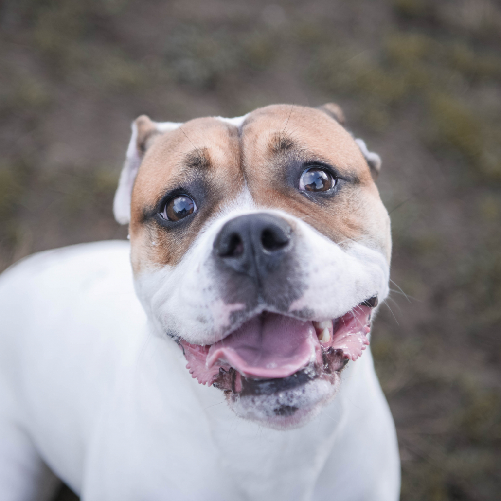 CHIEN AdoptionDescriptif :Gentil staff de catégorie 2 (LOF). Il a des bases d'éducation et sait rester seul. Sociabilité : il connait les enfants et OK congénères (à tester au refuge si vous avez déjà un chien).